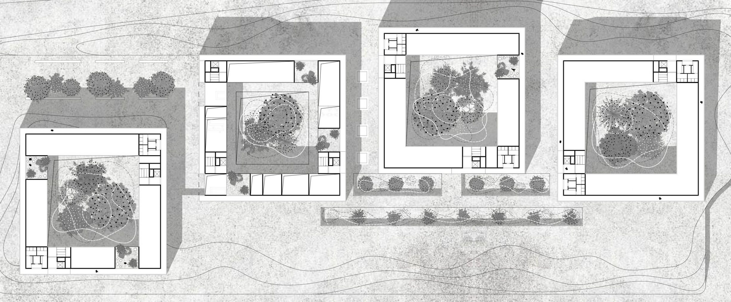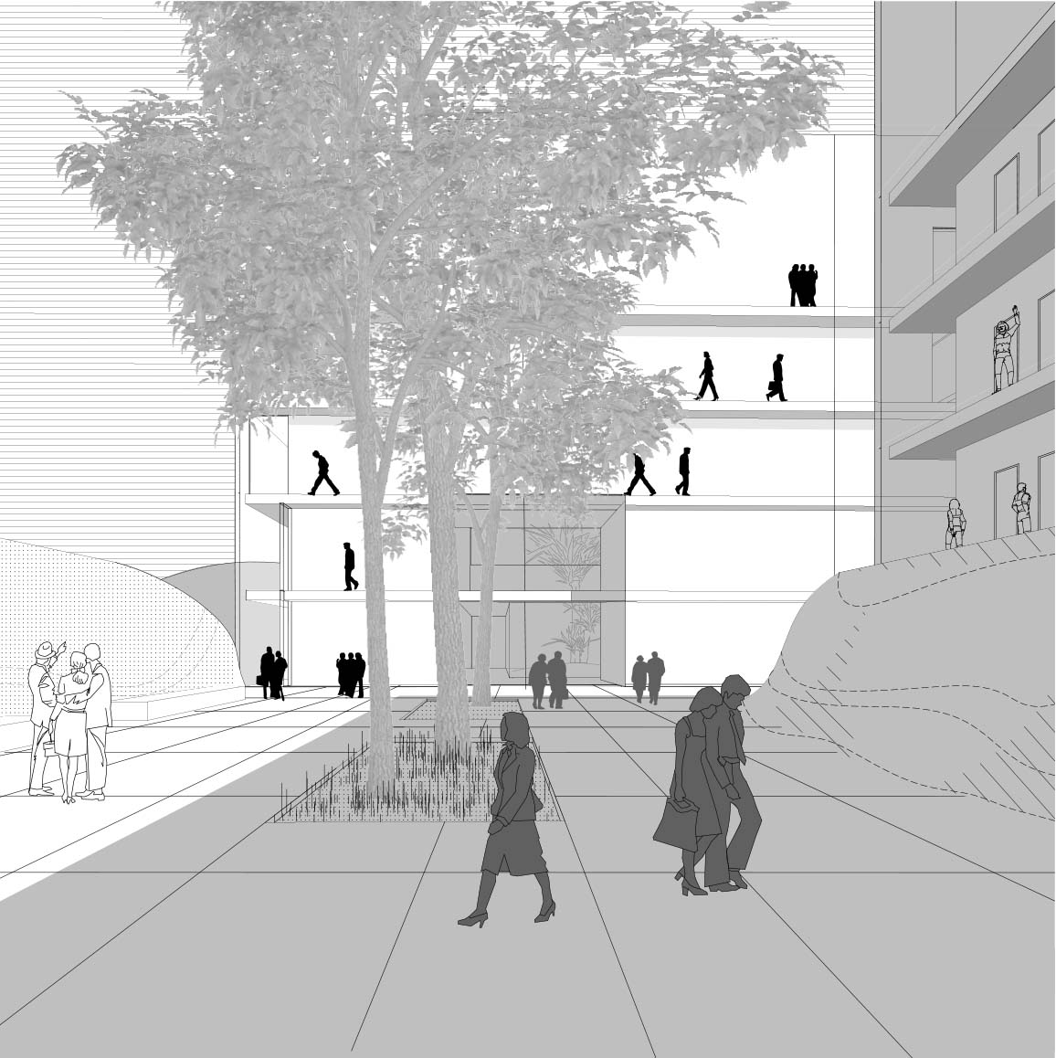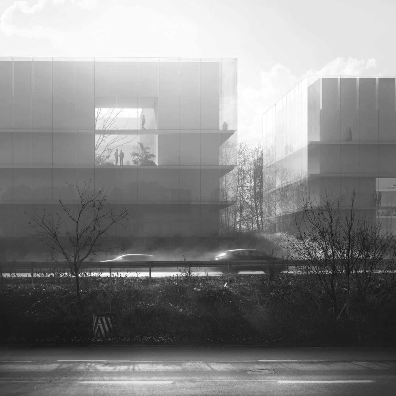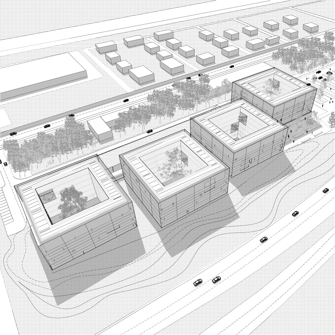 Zaprezentowana koncepcja zakłada zapewnienie użytkownikom możliwie najlepszego środowiska pracy. W budynku przyjęto zasadę otwarcia przestrzeni biurowych w kolejnych modułach na wewnętrzne dziedzińce izolując je od hałasu i zanieczyszczeń komunikacyjnych generowanych przez sąsiadujące drogi szybkiego ruchu oraz zapewniając konieczną prywatność funkcji chronionych. Powyższy zabieg przekłada się również na energooszczędność budynku – galerie komunikacyjne, otaczające przestrzenie biurowe pełnią rolę bufora cieplnego. Zabezpiecza on przed nadmiernym nagrzewaniem się pokojów biurowych w okresie letnim oraz wychładzaniem ich w sezonie zimowym. Zewnętrzna powłoka, którą tworzy szklana fasada z galeriami komunikacyjnymi nadaje budynkom lekkości i dynamizmu, eksponując ruch użytkowników. W elewacjach zaprojektowano również dwukondygnacyjne otwory, które w zamierzeniu autorów mają stanowić wewnętrzne ogrody dostępne dla pracowników, stanowiące łącznik między otoczeniem a wewnętrznymi dziedzińcami.